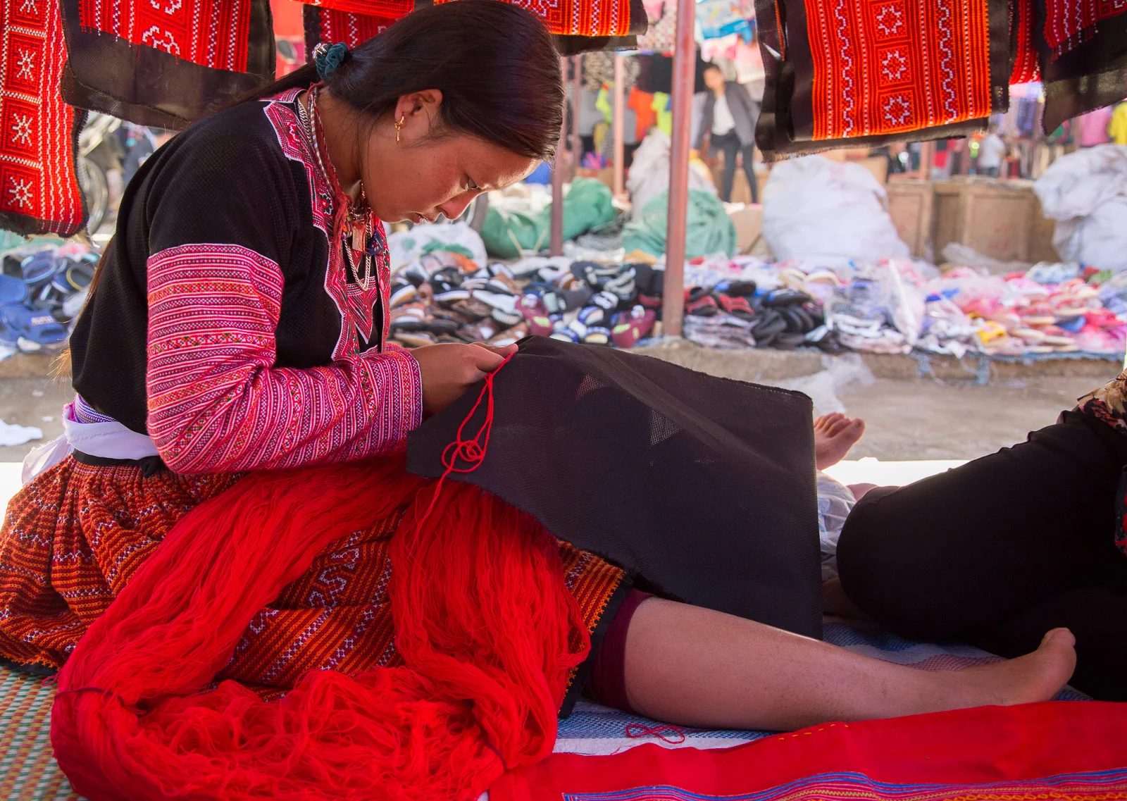 The Hmong Paco Sunday markets. Although they speak the same language, Hmong people identify here as two tribes: the red and the blue, distinguished by the colour of their clothing.